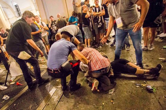 Σύμφωνα με μάρτυρες, όλα άρχισαν όταν υποχώρησε κιγκλίδωμα στην κεντρική πλατεία Σαν Κάρλο στο Τορίνο, όπου φίλοι της «Γιούβε» έβλεπαν το ματς σε γιγαντοοθόνη.