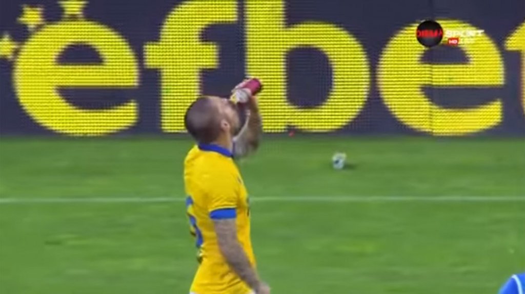 Παίκτης της Βερέγια στο ματς με τη Λέφσκι Σόφιας θέλησε να σβήσει τη δίψα του με μπύρα που πέταξαν στον αγωνιστικό χώρο αντίπαλοι οπαδοί