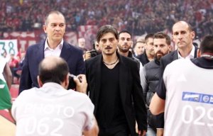 Οι πρόεδροι του Ολυμπιακού συνόδευσαν τον ισχυρό άνδρα του Παναθηναϊκού στον πάγκο των «πράσινων» στο ΣΕΦ, όπως είχε κάνει κι εκείνος στο κλειστό του ΟΑΚΑ την περασμένη Πέμπτη (8/6)