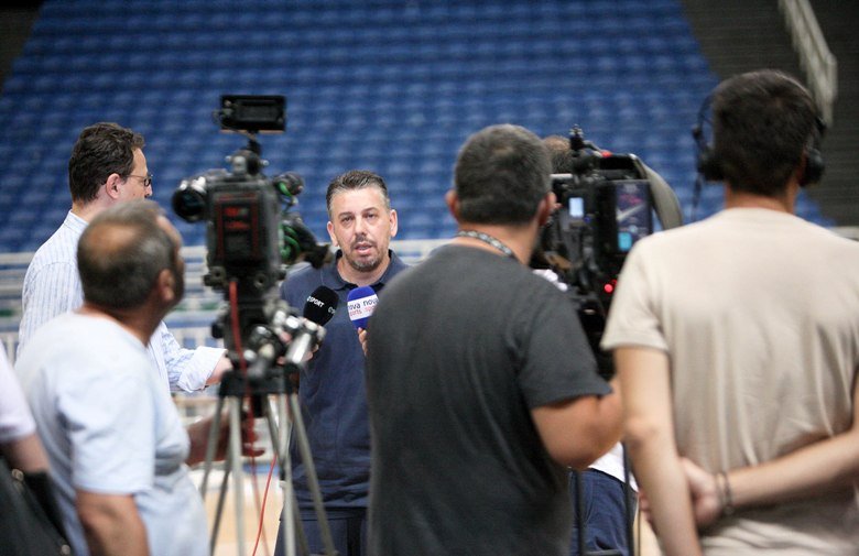 Για το ενδιαφέρον των δημοσιογράφων για την Εθνική Νέων: «Το ενδιαφέρον αυτό είναι μια κατάσταση που δεν αφορά μόνο εμάς. Είναι μια κατάσταση όλου του ελληνικού μπάσκετ. Είμαστε μια χώρα που ενδιαφέρεται για το μπάσκετ. Ο κόσμος ζητάει νέους πρωταγωνιστές, νέους Έλληνες παίκτες, οπότε είναι λογικό και από τη δική σας πλευρά να προβάλλετε αυτή την ομάδα.»