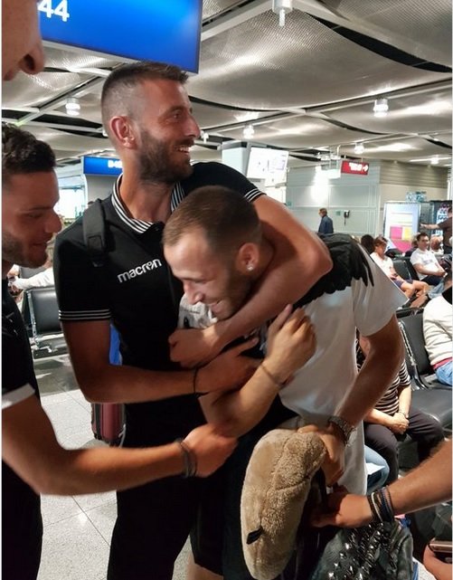 Μάλιστα, εκεί τους περίμενε μία... έκπληξη, αφού πέτυχαν τον Στέλιο Κίτσιου (ΦΩΤΟ 1) που παραχωρήθηκε δανεικός στην Σιντ Τρούιντεν και επιστρέφει για λίγες ημέρες στη Θεσσαλονίκη πριν ξαναπάει στο Βέλγιο.