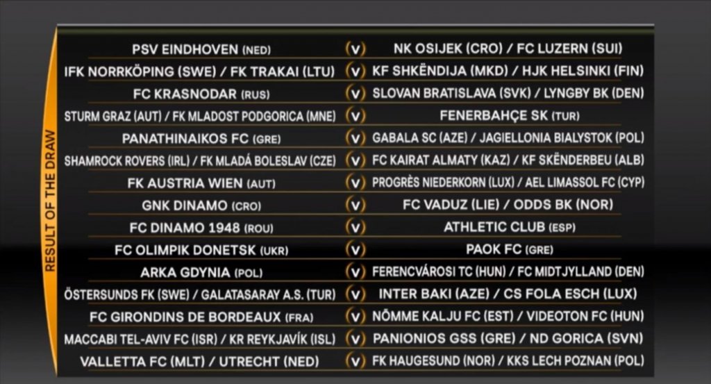 Οι πρώτοι αγώνες θα γίνουν στις 27 Ιουλίου και οι ρεβάνς στις 3 Αυγούστου, ενώ έτσι όπως βγήκαν τα ζευγάρια Παναθηναϊκός θα ξεκινήσει από τη Λεωφόρο, ο ΠΑΟΚ από την Ουκρανία και ο Πανιώνιος από το Ισραήλ.