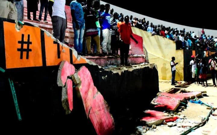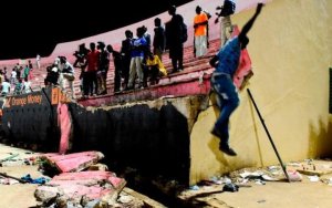 Αποτέλεσμα ήταν να καταρρεύσει τοίχος της εξέδρας, την ώρα που και η αστυνομία έκανε χρήση δακρυγόνων, προκαλώντας μεγαλύτερο πανικό και συμβάλλοντας στην τραγωδία.