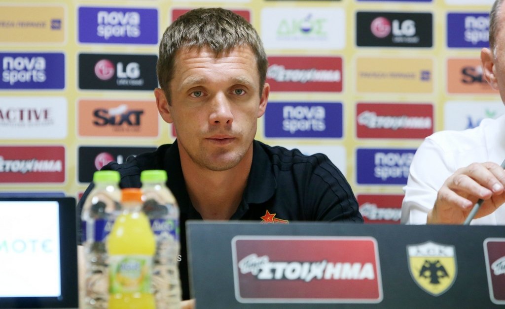 Για το αν τον βοηθά το γεγονός ότι αρκετοί παίκτες της ΑΕΚ έχουν παίξει στο ρωσικό πρωτάθλημα: «Δεν νομίζω ότι μας βοηθά το γεγονός, δεν έπαιξαν πολύ ούτε ο Αλμέιδα ούτε ο Βράνιες».