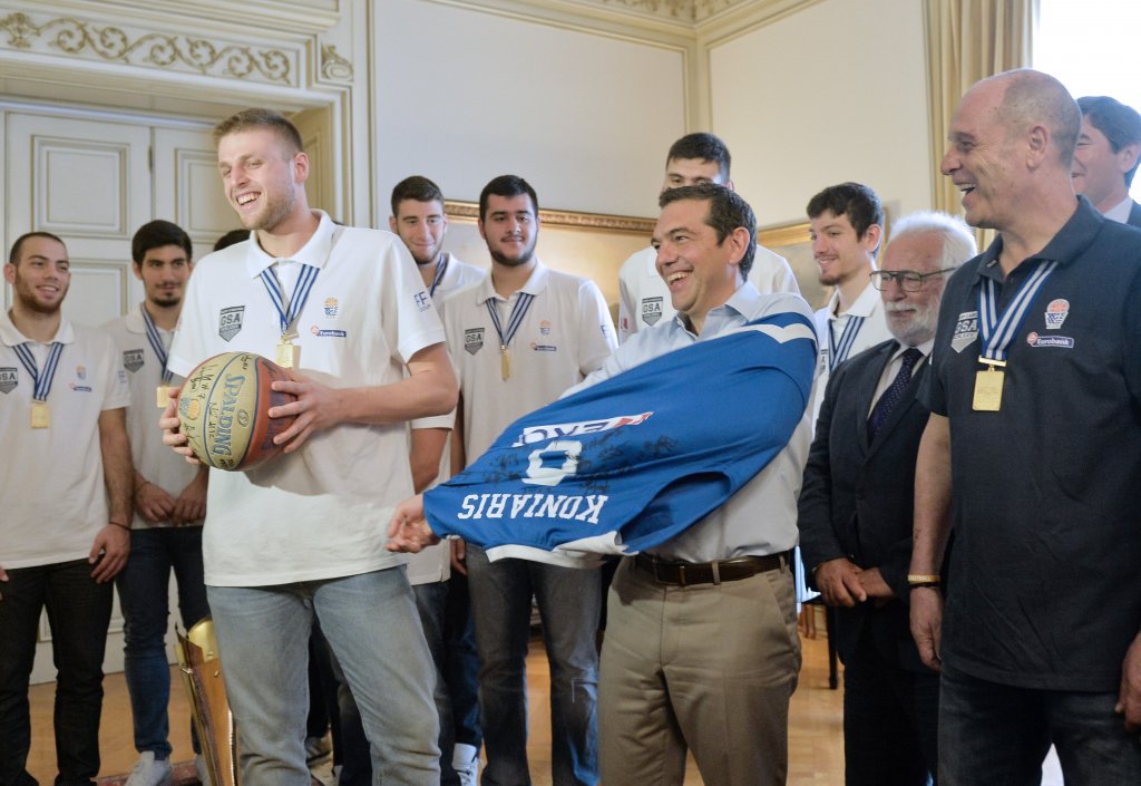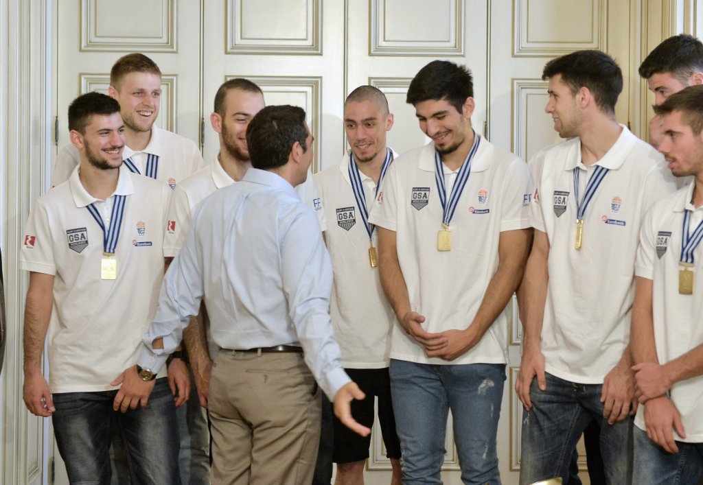 Οι «χρυσοί» διεθνείς μας βρέθηκαν το πρωί στο Μέγαρο Μαξίμου όπου τους υποδέχθηκε ο Αλέξης Τσίπρας, που το... χάρηκε ιδιαίτερα.