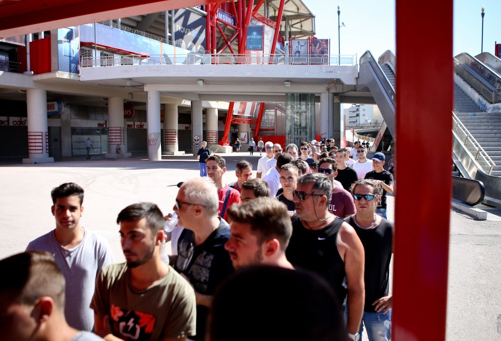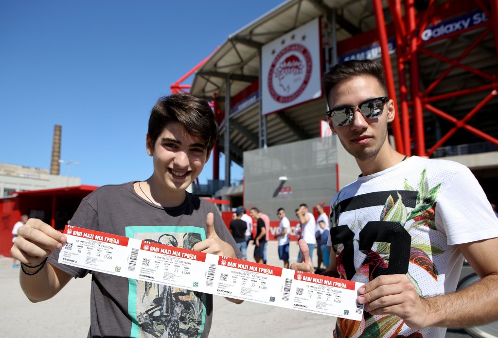 Τη Δευτέρα (31/7) ξεκίνησε η διάθεση των εισιτηρίων και από τα εκδοτήρια, αφού μέχρι στιγμής γινόταν μόνο ηλεκτρονικά, και οι φίλαθλοι έσπευσαν να τα προμηθευτούν, περιμένοντας υπομονετικά στην ουρά.