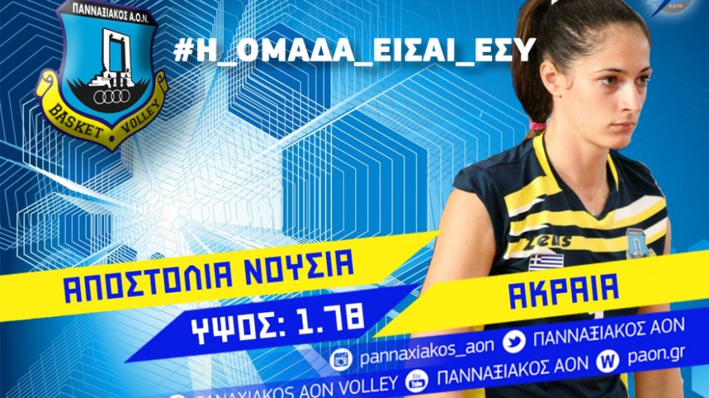 Αναλυτικά η ανακοίνωση: «Ο πρόεδρος και το Δ.Σ. του Πανναξιακού Α.Ο.Ν. καλωσορίζουν στις τάξεις του συλλόγου, την Αποστολία Νούσια. Η 26χρονη ακραία από τη Λάρισα, επιστρέφει στο σύλλογο του Πανναξιακού μετά από ένα χρόνο και θα αγωνιστεί στην ομάδα μας την αγωνιστική περίοδο 2017-2018. Η Αποστολία Νούσια με την αγωνιστική της παρουσία θα συμβάλει στην προσπάθεια της γυναικείας ομάδας βόλεϊ του Πανναξιακού ΑΟΝ για την επίτευξη των στόχων του Πανναξιακού, στις εγχώριες διοργανώσεις».