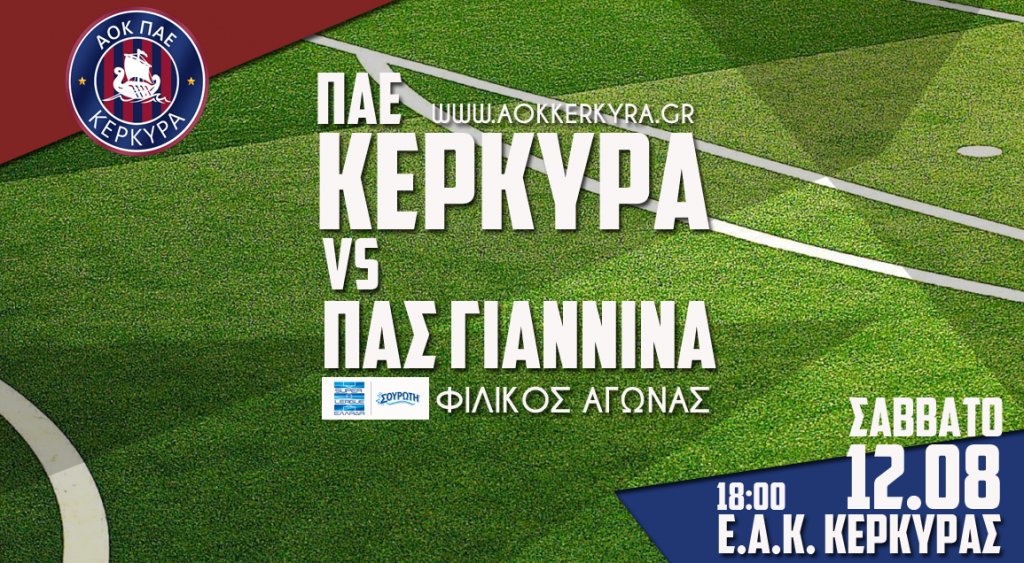 Αναλυτικά: «Η ΑΟΚ ΠΑΕ ΚΕΡΚΥΡΑ ανακοινώνει ότι το Σάββατο 12 Αυγούστου θα υποδεχτεί τον ΠΑΣ ΓΙΑΝΝΙΝΑ στην πρώτη εντός έδρας φιλική αναμέτρηση ενόψει νέας αγωνιστικής περιόδου 2017 – 2018.