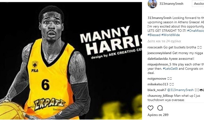 Τη φανέλα της ΑΕΚ θα φορά από τη νέα σεζόν ο Μάνι Χάρις, ο οποίος ανακοινώθηκε από την Ένωση το Σάββατο (12/8).