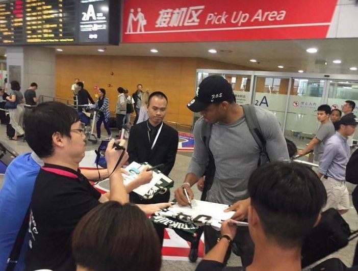 Ο Έλληνας διεθνής βρίσκεται στην Κίνα για υποχρεώσεις με το NBA και κατά την άφιξή του στο αεροδρόμιο έτυχε αποθεωτική υποδοχής.
