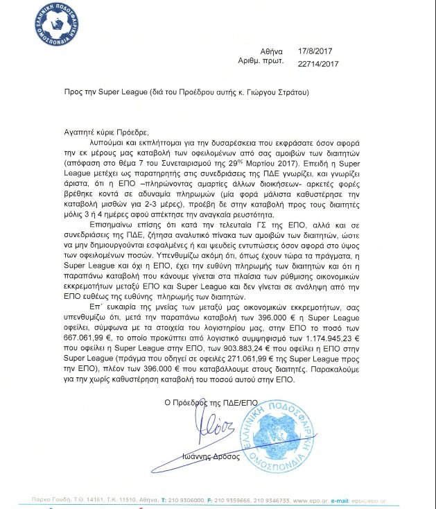 Η ΠΔΕ προσπάθησε να ανατρέψει τις εντυπώσεις μετά το έγγραφο που έστειλε στη Σούπερ Λίγκα ζητώντας την να ενημερωθεί για τις οφειλές προς τους διαιτητές και που δικαιολογημένα προκάλεσε την οργή της διοργανώτριας.