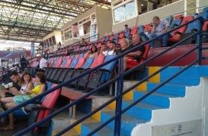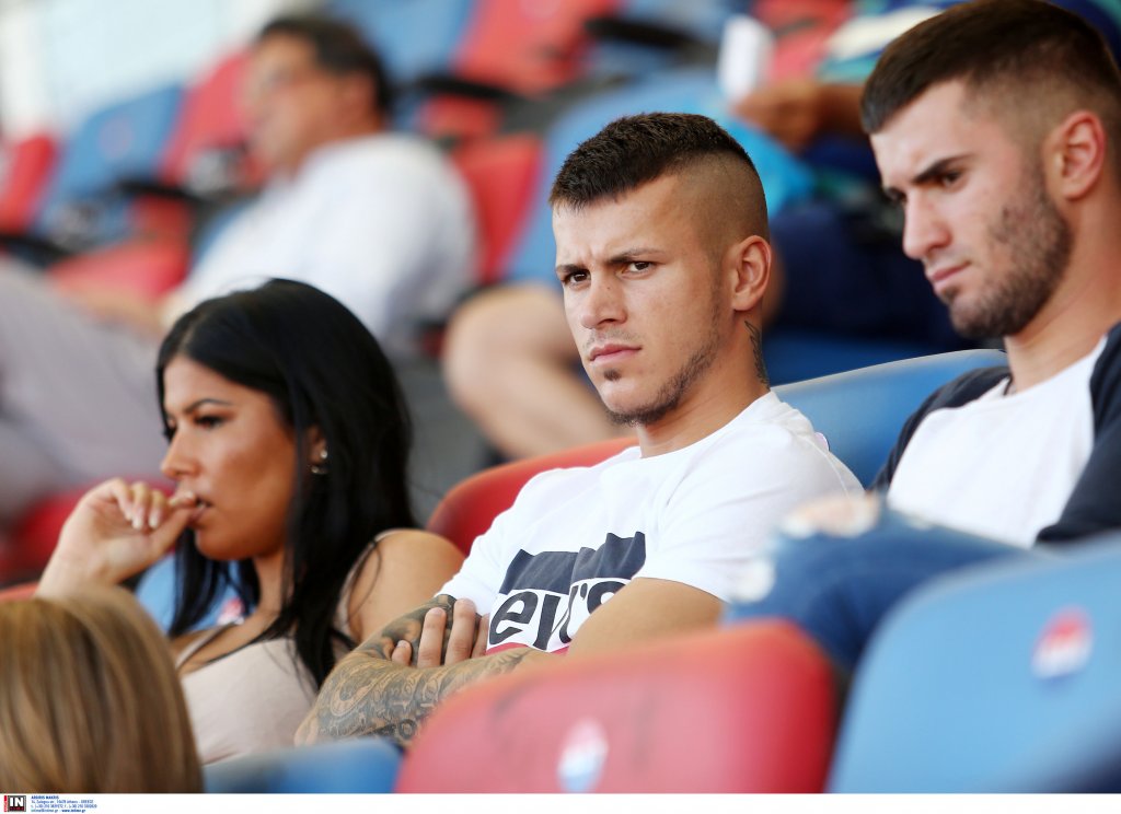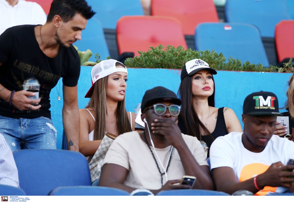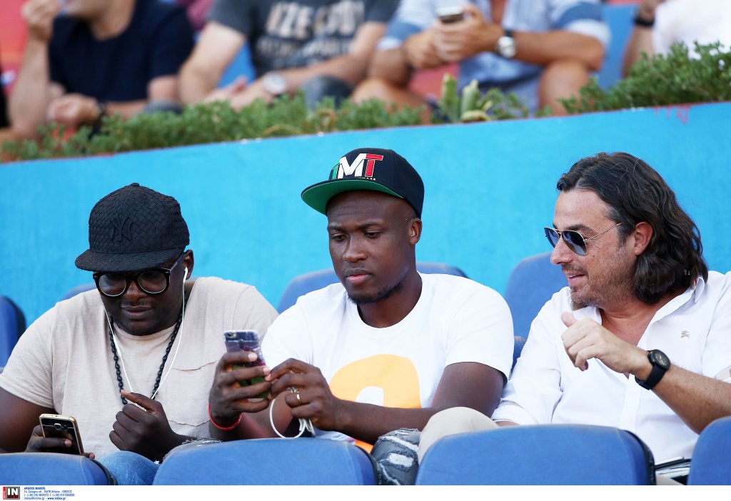 Οι δύο ποδοσφαιριστές παρακολουθούν το παιχνίδι της προσεχώς νέας τους ομάδας, με αντίπαλο τον Απόλλωνα Σμύρνης