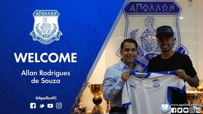 -Για τον Άλαν: «Η Εταιρεία Απόλλων Ποδόσφαιρο (ΔΗΜΟΣΙΑ) Λτδ ανακοινώνει την έναρξη συνεργασίας με τον Βραζιλιάνο διεθνή μέσο ALLAN RODRIGUES DE SOUZA με την μορφή δανεισμού μέχρι τον Μάιο 2018 από την ομάδα της Λίβερπουλ.