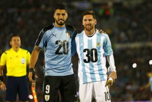 Λουίς Σουάρες και Λιονέλ Μέσι πόζαραν μαζί πριν τη σέντρα της αναμέτρησης της Ουρουγουάης με την Αργεντινή τα ξημερώματα της Παρασκευής (1/9), στηρίζοντας την κοινή υποψηφιότητα των δύο χωρών για διοργάνωση του Παγκοσμίου Κυπέλλου του 2030 (ΦΩΤΟ), αλλά στον αγωνιστικό χώρο η «λευκή» ισοπαλία δεν ικανοποίησε κανέναν.
