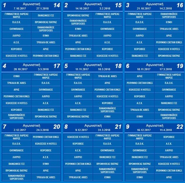 8η (9/12): ΑΕΚ - Ολυμπιακός & Άρης - Παναθηναϊκός (31/3)