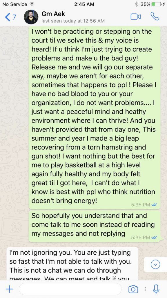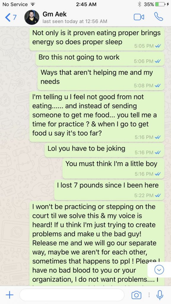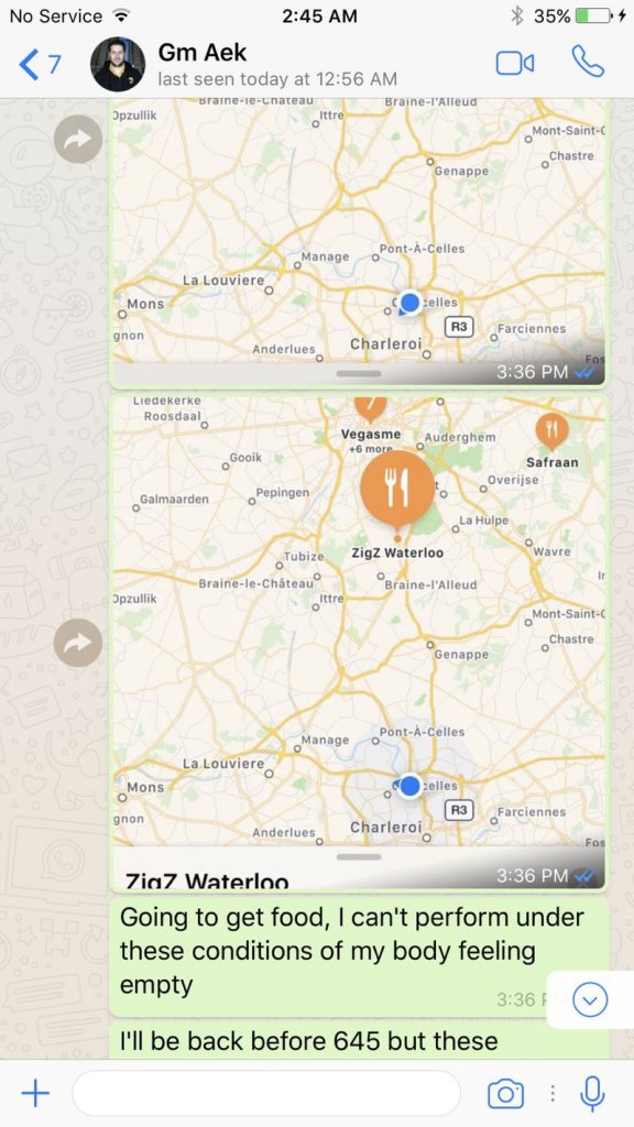 Μάλιστα, δημοσίευσε στα μέσα κοινωνικής δικτύωσης και τη συζήτηση που είχε με τον τιμ μάνατζερ, Γιώργο Χήνα, αφού τον ενημέρωσε ότι πάει να βρει μόνος του φαγητό.