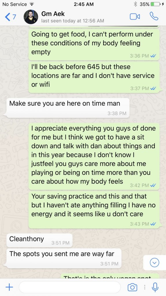 Συγκεκριμένα, ο Αμερικανός είναι βίγκαν και εξέφρασε τη δυσαρέσκειά του για το γεγονός ότι η ΚΑΕ δεν του εξασφάλιζε γεύματα που να ανταποκρίνονται στις προτιμήσεις του.