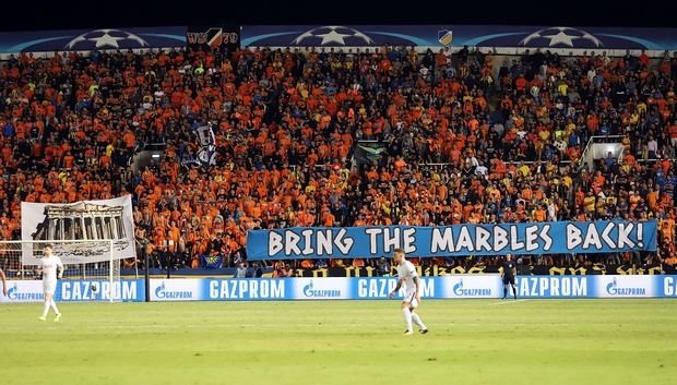 Συγκεκριμένα, στο ματς του Τσάμπιονς Λιγκ την Τρίτη (26/9) σήκωσαν πανό με τα οποία ζητούσαν την επιστροφή των μαρμάρων του Παρθενώνα.