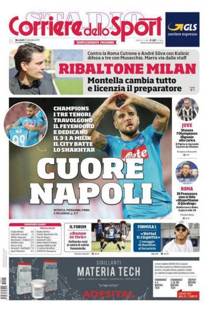 Corriere della Sera: «Γιούβε, το δίλημμα ο Ιγκουαΐν. Το μήνυμα του Αλέγκρι: "Ας αρχίσουμε το Κύπελλό μας. Δεν υποτιμούμε τον Ολυμπιακό, αλλά πρέπει να νικήσουμε"».