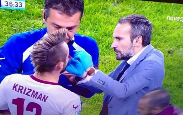 Σύμφωνα με τους Θεσσαλούς, αυτό θα γίνει εξαιτίας αγκωνιάς του Βραζιλιάνου χαφ στον Κρίζμαν, που είχε ως συνέπεια να σπάσει η μύτη του Κροάτη επιθετικού και ο οποίος θα μείνει εκτός δράσης για 15 ημέρες.
