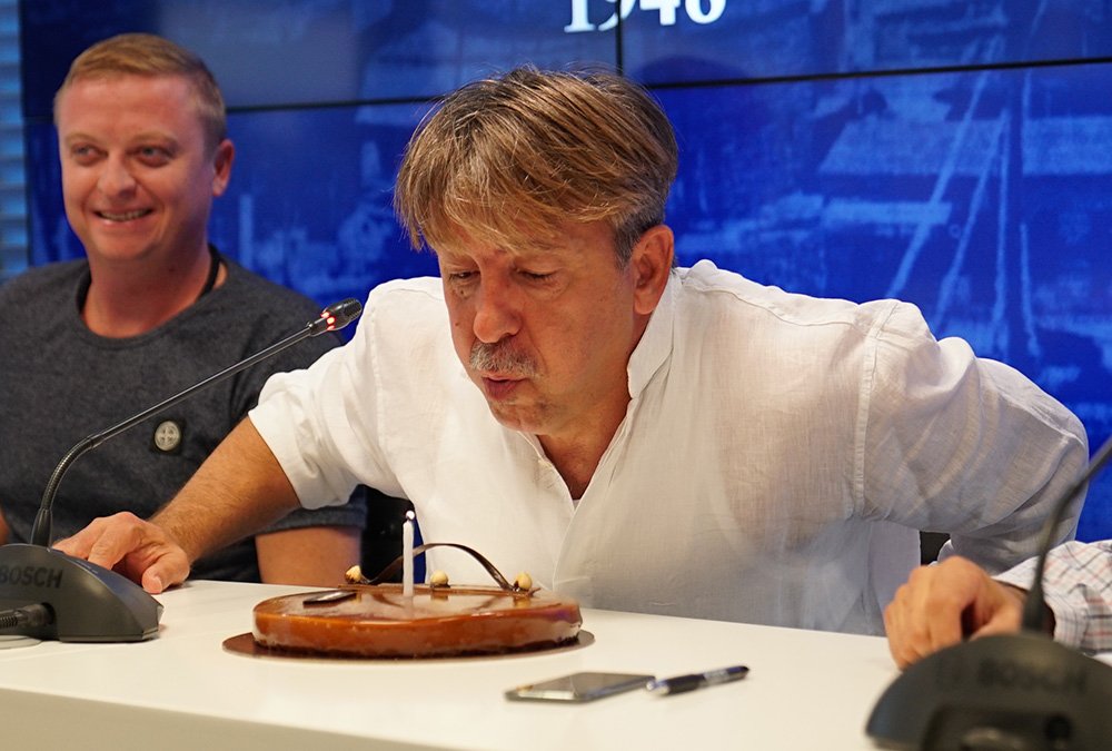 Αξίζει να σημειωθεί πως ο Βούλιτς συμπληρώνει σήμερα 56 χρόνια ζωής και γι' αυτόμετά το τέλος της παρουσίασής του τον περίμενε μία έκπληξη. Οι άνθρωποι του Απόλλωνα του έφεραν μία τούρτα και εκείνος έσβησε το κεράκι. Στη συνέχεια ακολούθησαν οι ευχές των διοικούντων και των δημοσιογράφων.