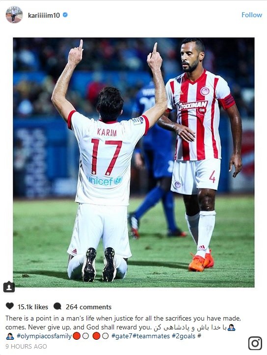 Ο Καρίμ Ανσαριφάρντ επέστρεψε στην αρχική ενδεκάδα του Ολυμπιακού κόντρα στον Πανιώνιο και θέλησε να αποδείξει ότι αξίζει να βρίσκεται εκεί.