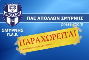 Αναλυτικά: «Η ΠΑΕ Απόλλων Σμύρνης ενημερώνει ότι οι μετοχές της ΠΑΕ είναι υπό παραχώρηση και καλεί κάθε ενδιαφερόμενο να επικοινωνήσει για λεπτομέρειες με τα γραφεία της (Λ. Κηφισίας 64Β, 15125 Μαρούσι, 210-6300233)».