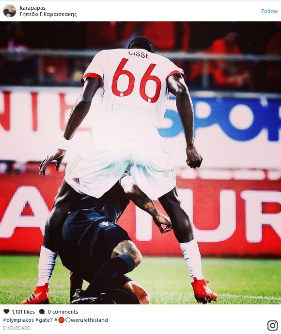 Ο διευθυντής Επικοινωνίας της «ερυθρόλευκης» ΠΑΕ ανέβασε μία φωτογραφία του Σισέ πάνω από τον Πρίγιοβιτς, σε ένα επεισόδιο που είχαν οι δύο παίκτες στο ματς.