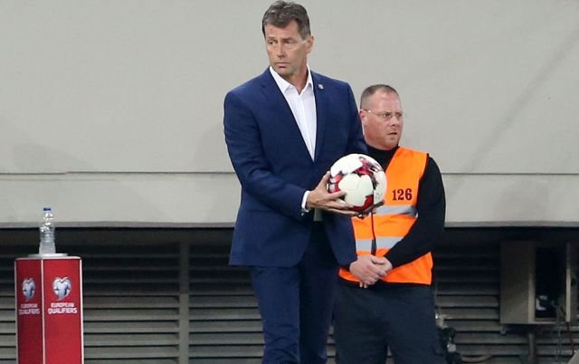 Για το ματς: «Ναι, αυτή τη στιγμή είμαι πολύ στεναχωρημένος. Από όλα τα ματς στα προκριματικά είχαμε μόνο ένα κακό και χάσαμε το όνειρο για τη Ρωσία. Από την άλλη είμαι περήφανος διότι αυτή η ομάδα ήταν στην τελευταία θέση των προκριματικών του Ευρωπαϊκού και τώρα δείξαμε το πόσο ανταγωνιστικοί είμαστε. Κάναμε μία τέτοια πορεία και δείξαμε σε όλους το τι μπορούμε να κάνουμε. Λυπάμαι πολύ που δεν είχαμε τον Μανωλά έξω. Είδατε σήμερα τι έγινε με την άμυνα σήμερα με τον Τοροσίδη και τον Μανωλά. Ο Μήτρογλου είχε χτυπήσει και γύρισε αλλά δεν είχε την ίδια εικόνα και μας έλειπε και ο Δώνης. Δεν σκοράρουμε αρκετά αλλά είχαμε και αυτές τις ελλείψεις. Βλέπουμε ότι το επιθετικό κομμάτι μας χωλαίνει. Συνεχίζουμε όμως. Η ομάδα είναι δυνατή, είναι ανταγωνιστική και θα συνεχίσει να είναι δυνατή και ανταγωνιστική».