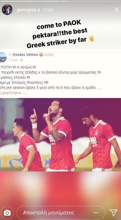 Λίγο αργότερα, μάλιστα, ο Γιώργος Σαββίδης «κάλεσε» μέσω Instagram τον ποδοσφαιριστή στον ΠΑΟΚ, χαρακτηρίζοντάς τον ως τον κορυφαίο Έλληνα φορ.