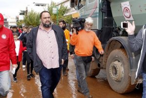 Ο μεγαλομέτοχος της ΠΑΕ Ολυμπιακός περπάτησε στους δρόμους, μίλησε με τους πλημμυροπαθείς ενώ συνομίλησε στο δημαρχείο με την Δήμαρχο Ιωάννα Κριεκούκη.