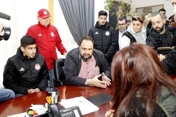 Μαζί του ο Πρόεδρος και Διευθύνοντας Σύμβουλος της «Καραϊσκάκης ΑΕ», Βασίλης Βασιλειάδης, ο Διευθύνοντας Σύμβουλο της ΠΑΕ, Γιώργος Παύλου, ο Διευθυντής Επικοινωνίας, Κώστας Καραπαπάς, ο Διευθυντής ΕΚΕ Δομένικος Μασούλας, ο τιμ μάνατζερ, Κυριάκος Δουρέκας, αλλά και οι ποδοσφαιριστές Θανάσης Ανδρούτσος και Δημήτρης Νικολάου.