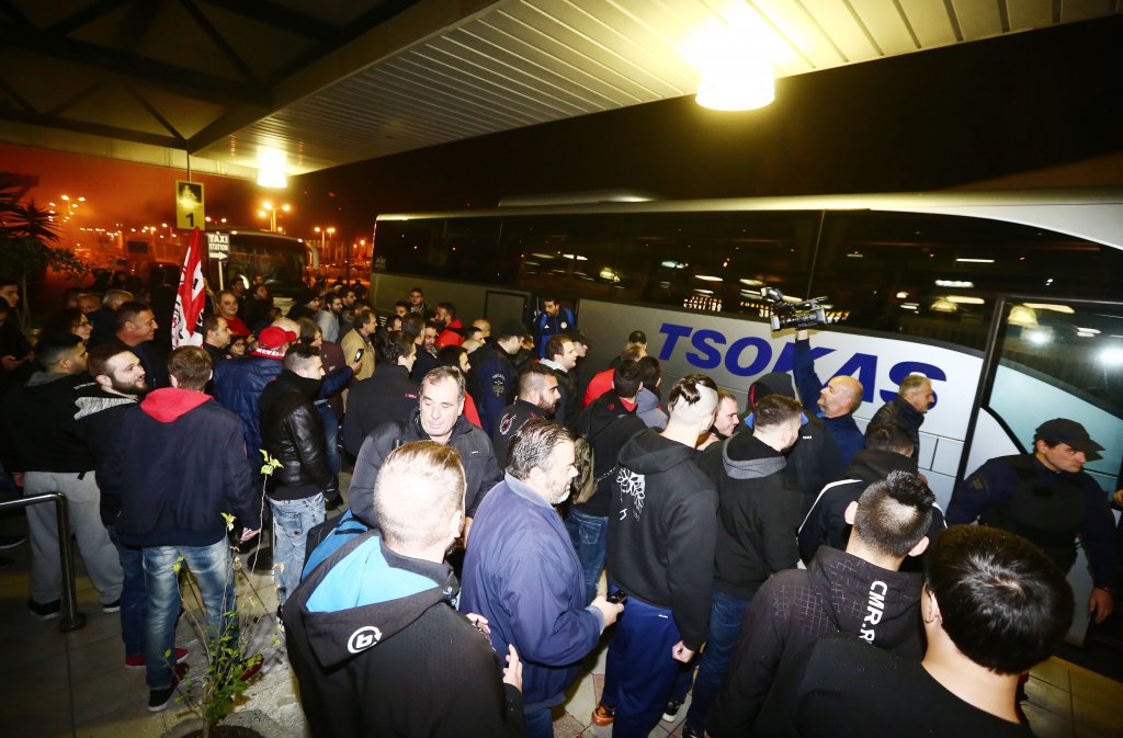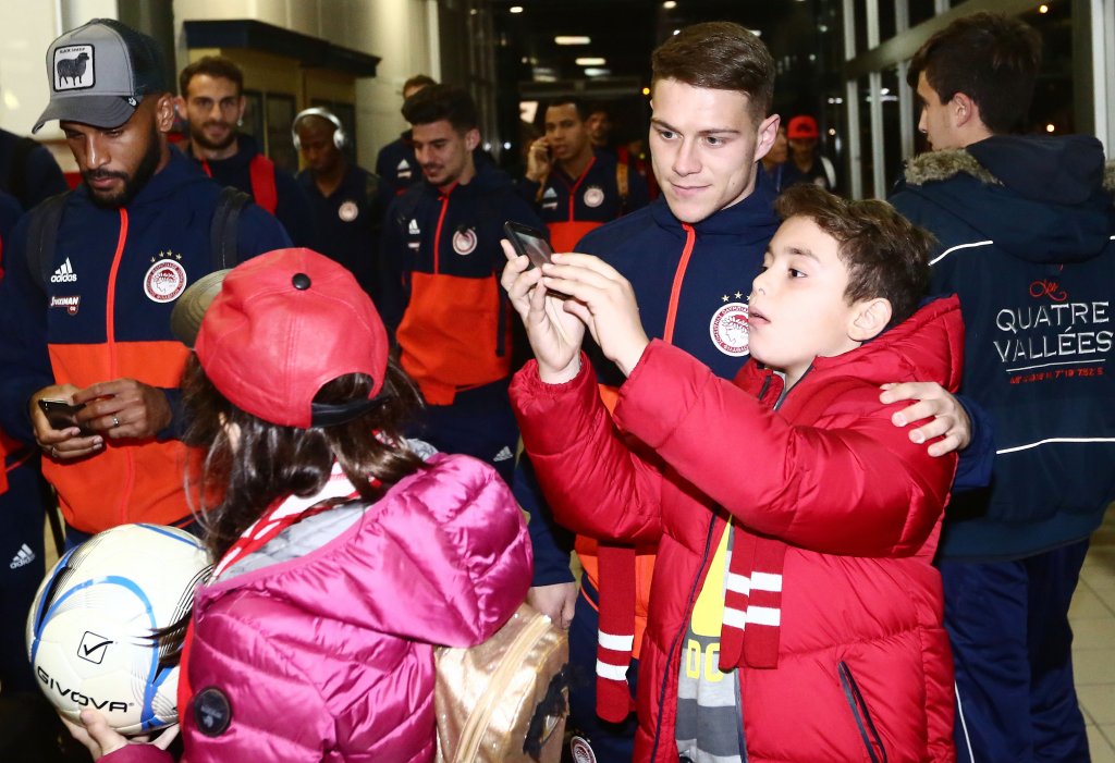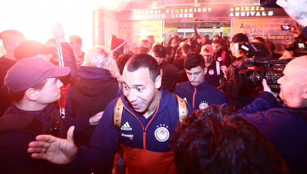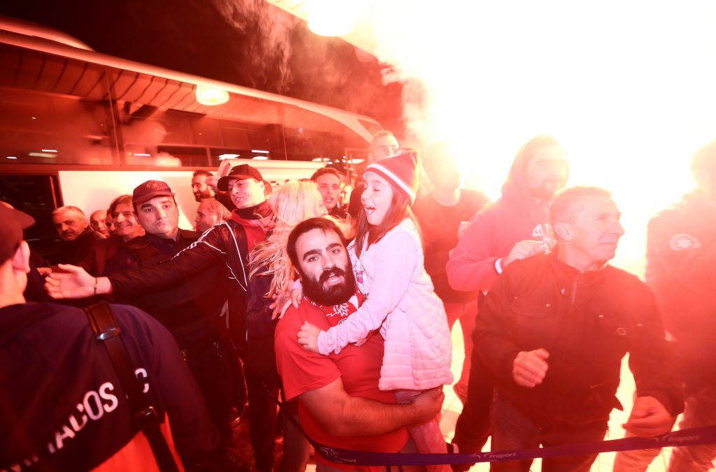 Τόσο στην αίθουσα αφίξεων όσο και έξω από αυτή, υπήρχαν φίλαθλοι του που τραγουδούσαν και εμψύχωναν τους Πειραιώτες. Συνθήματα, καπνογόνα, αλλά αγκαλιές προς τους ποδοσφαιριστές συνέθεταν το σκηνικό, που σκόρπισε χαμόγελα σε όλα τα μέλη της ομάδας, ενώ μικροί και μεγάλοι ζητούσαν μια φωτογραφία από τους παίκτες, χωρίς να την αρνηθεί κανείς…