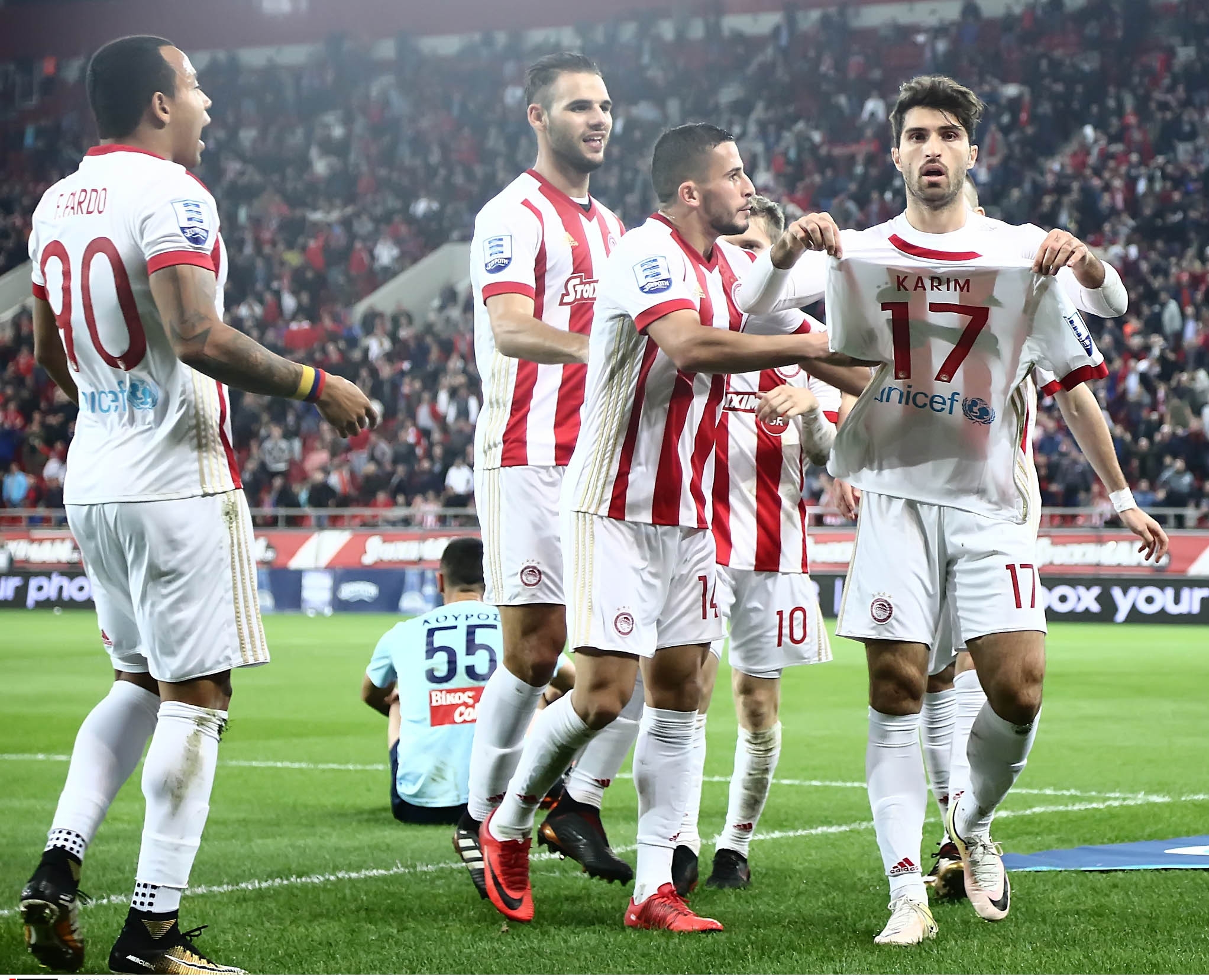 ΚΑΡΙΜ Ανσαριφάρντ! Με τα δύο γκολ, στο 80΄και τις καθυστερήσεις (94΄) , ξεμπλόκαρε τον Ολυμπιακό, στο ματς με τον Απόλλωνα, που είχε προηγηθεί στα μέσα του α΄ημιχρόνου και ισοφαρίστηκε μετά από λίγα λεπτά, αλλά το 1-1 παρέμεινε ως αργά .