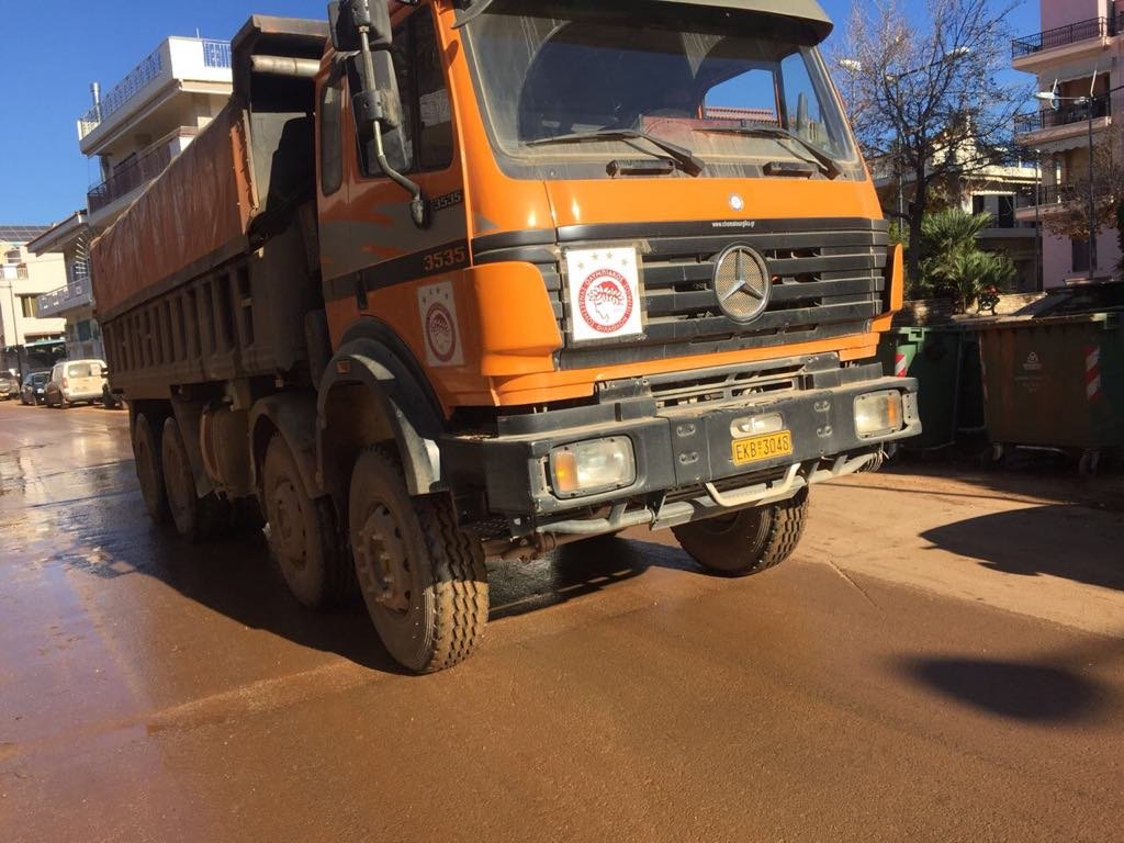 Εννοείται, πως και το Σάββατο (16/12) συνεχίστηκαν οι καθαρισμοί από τις λάσπες, δρόμων και προαύλιων κατοικιών, χάρις στα φορτηγά και τα χωματουργικά μηχανήματα, τα οποία έχει διαθέσει ο Ολυμπιακός, από τις πρώτες μέρες των καταστροφών στη Μάνδρα Αττικής».