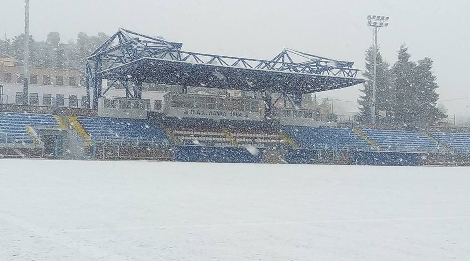 Λευκό τοπίο στη Λαμία και ο αγώνας της τοπικής ομάδας με τον Παναθηναϊκό παραμένει στον αέρα.