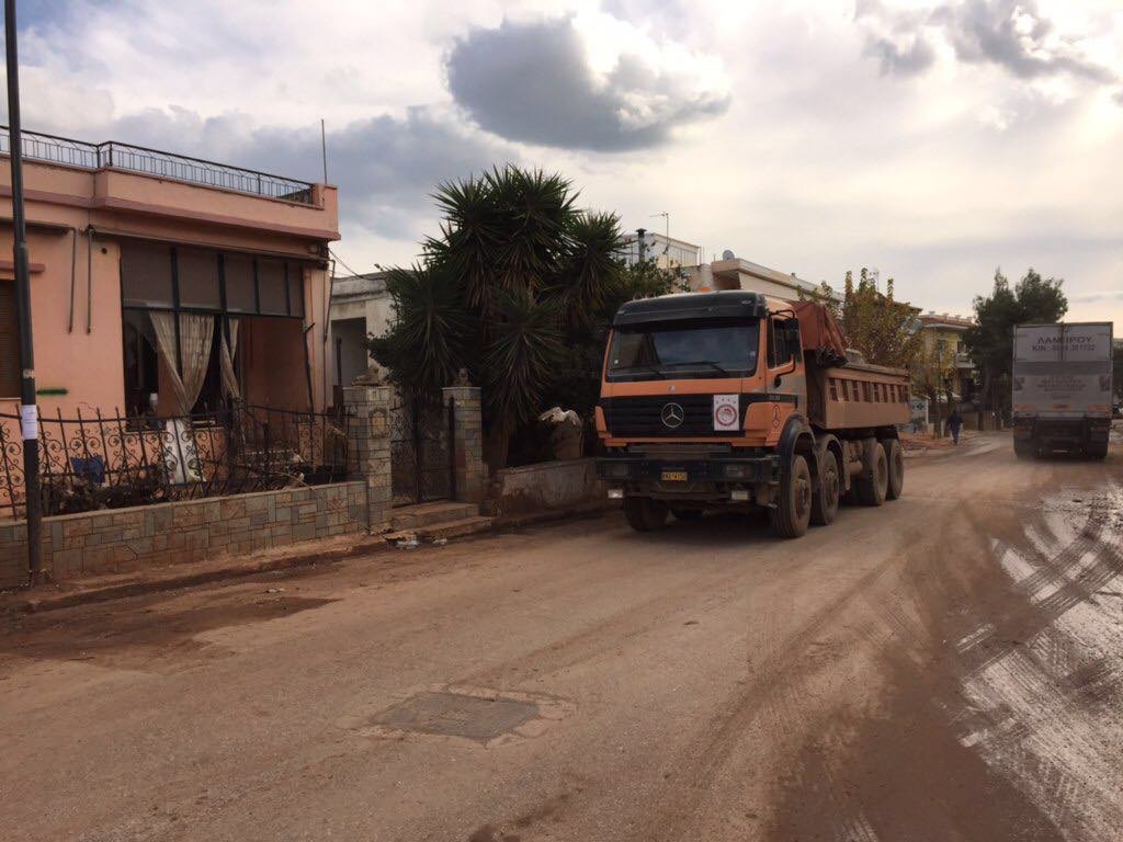 Σήμερα οι σιδηρουργοί μας βρέθηκαν στο Δημοτικό Κινηματογράφο, για να κατασκευάσουν με ταχύτατους ρυθμούς τις εξωτερικές σιδερόπορτές του. Επίσης, τα χωματουργικά μας μηχανήματα συνέχισαν να καθαρίζουν τους δρόμους, τα πεζοδρόμια και τις αυλές των σπιτιών. Τα φορτηγά μας μετέφεραν λάσπες και φερτά υλικά από την πόλη στην χωματερή».
