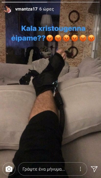 Σε αυτή φαίνεται το δεμένο του πόδι, με το σχόλιο: «Καλά Χριστούγεννα είπαμε;;».