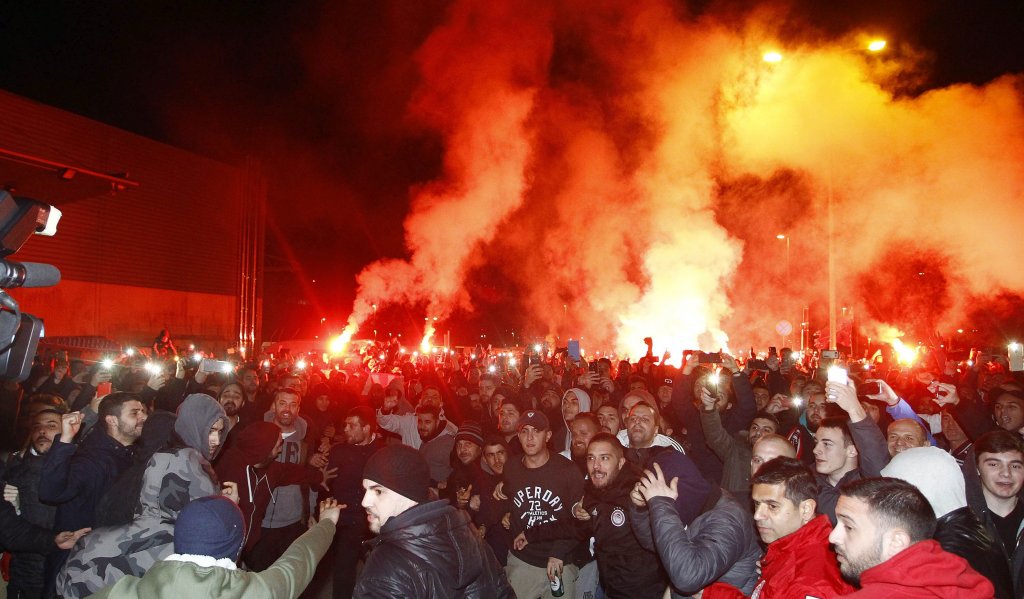 Φυσικά, ακούστηκαν τα ανάλογα συνθήματα για την επιστροφή του Βέλγου επιθετικού, ο οποίος συνοδευόταν από τον Φρανσουά Μοντέστο και δεν μπορούσε να κρύψει τη χαρά του για την επιστροφή του στους «ερυθρόλευκους».