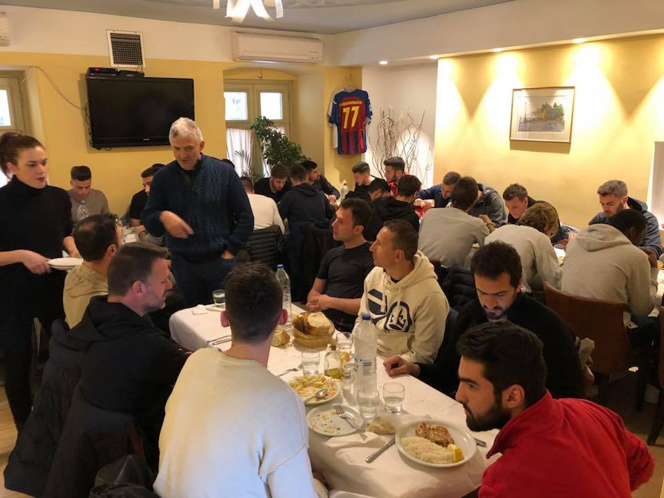Στη συνέχεια ο Καρδιτσιώτης τεχνικός έκανε το τραπέζι σε όλο το ποδοσφαιρικό τμήμα για την ονομαστική του εορτή. Όπως έλεγε, μάλιστα, «αυτή είναι η οικογένειά μου τώρα, με αυτούς θα περάσω τη μέρα» σε μία προσπάθεια να υπάρξει σύσφιξη σχέσεων.