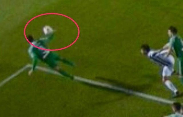 Συγκεκριμένα, στο 89’ μετά από εκτέλεση φάουλ του Κονέ για την «Ελαφρά Ταξιαρχία», ο Ινσούα διώχνει πεντακάθαρα με πρόθεση και απλωμένο το χέρι του (για αυτό και δεν είναι ακούσιο) εντός περιοχής και αφού πρώτα η μπάλα είχε βρει στο κεφάλι του, ωστόσο το καταφανέστατο πέναλτι δεν δίνεται στους γηπεδούχους! Επίσης, όταν πέφτουμε δεν σηκώνουμε ψηλά τα χέρια μας και δεν ρίχνουμε καν... σφαλιάρα στην μπάλα, οπότε καταρρίπτεται και αυτή η τυχόν δικαιολογία...