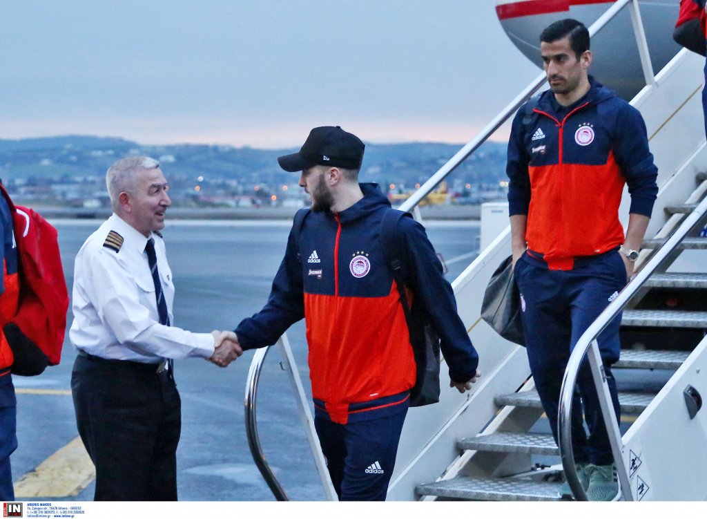 Η «ερυθρόλευκη» αποστολή έφτασε, δίχως παρατράγουδα και απρόοπτα, λίγο πριν από τις 19:00 του Σαββάτου (24/2) στη Θεσσαλονίκη.