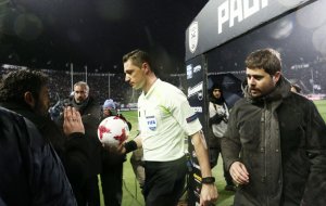 Ο διεθνής διαιτητής αναφέρει τον τραυματισμό του προπονητή των Πειραιωτών Όσκαρ Γκαρθία από αντικείμενο που έριξε οπαδός των Θεσσαλονικέων ως αιτία της μη διεξαγωγής του ματς της 23ης αγωνιστικής της Σούπερ Λίγκας. Και ως εκ τούτου, ο ΠΑΟΚ είναι υπαίτιος της μη τέλεσης του αγώνα και η υπόθεση πηγαίνει αρχικά στον αθλητικό δικαστή της διοργανώτριας του πρωταθλήματος για τα περαιτέρω.