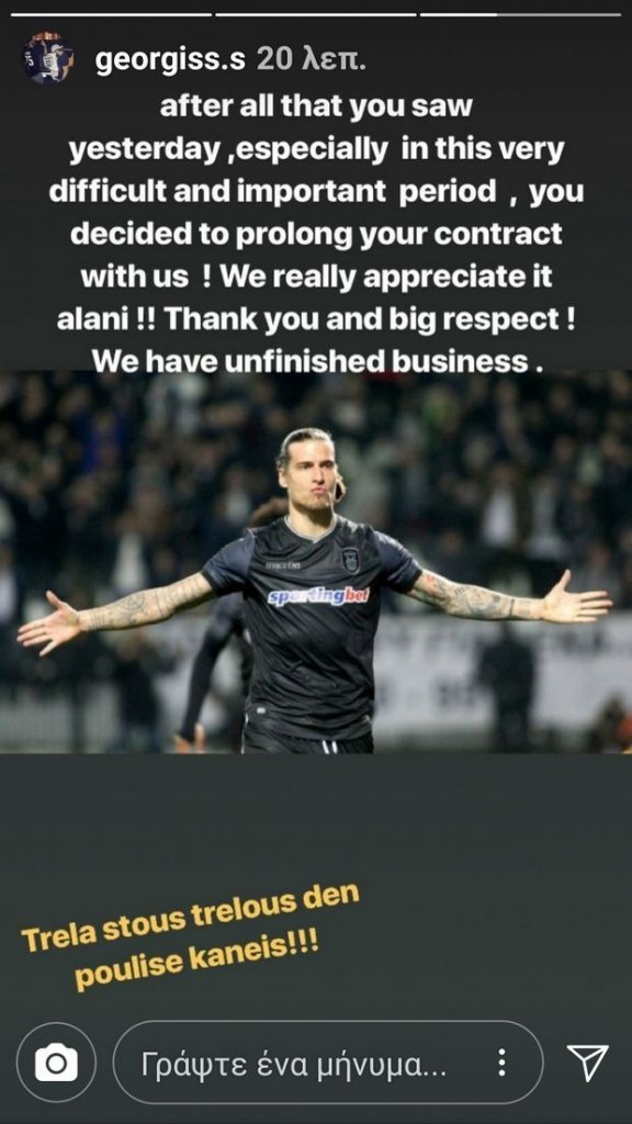 «Μετά από όσα είδες χθες, ειδικά μετά από αυτή τη δύσκολη και σημαντική περίοδο, αποφάσισες να επεκτείνεις το συμβόλαιό σου με εμάς! Το εκτιμούμε αληθινά αλάνι!!