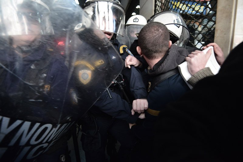 Την ώρα που έκαναν διαπραγματεύσεις με αστυνομικό για να πάει πενταμελής επιτροπή στο γραφείο προκειμένου να επιβλέψει τη διαδικασία, τα ΜΑΤ έκαναν απρόκλητη επίθεση, σπρώχνοντάς τους με τις ασπίδες και κάνοντας χρήση χημικών.