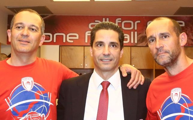 Περιχαρείς οι πρόεδροι του Ολυμπιακού για το διπλό στο ΟΑΚΑ * Αποθεώθηκαν Σφαιρόπουλος και παίκτες από περίπου 100 οπαδούς των Πειραιωτών