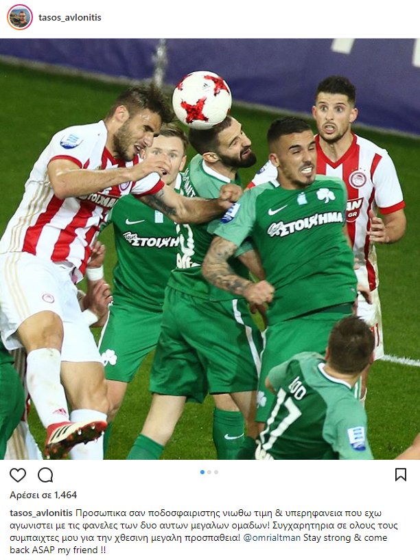 «Προσωπικά σαν ποδοσφαιριστής νιώθω τιμή και υπερηφάνεια που έχω αγωνιστεί με τις φανέλες των δυο αυτών μεγάλων ομάδων! Συγχαρητήρια σε όλους τους συμπαίκτες μου για την χθεσινή μεγάλη προσπάθεια!».
