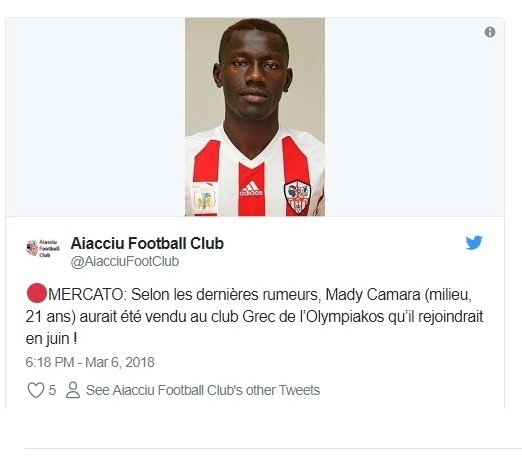 Σημειώνεται πως από την Αζαξιό έχει αποκτηθεί και ο Παπέ Αμπού Σισέ ο οποίος έχει κάνει πολύ καλές εμφανίσεις τη φετινή σεζόν.