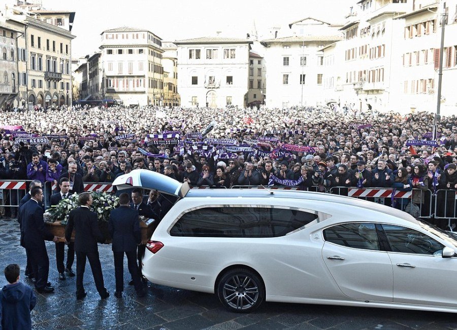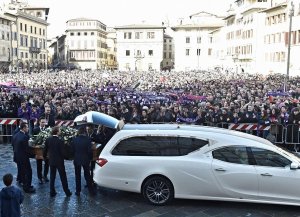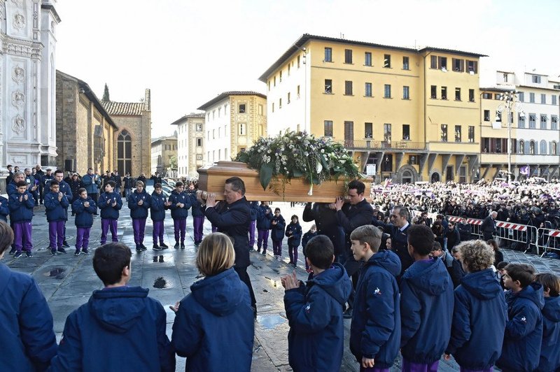 Η εξόδιος ακολουθία του αρχηγού των «βιόλα» πραγματοποιήθηκε το πρωί της Πέμπτης (8/3) στη Βασιλική Εκκλησία της Φλωρεντίας, Σάντα Κρότσε.
