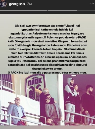 Μάλιστα, καταλήγει με τη φράση: «Ο ΠΑΟΚ είναι η ζωή μου αλλά ο πατέρας μου είναι ο Θεός μου».